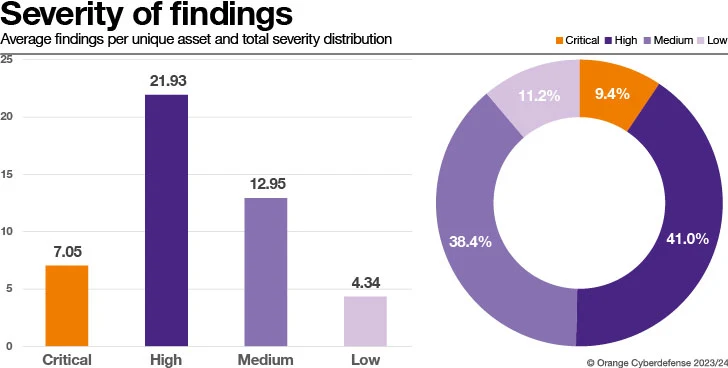 Het gemiddelde aantal ‘kritieke’ of ‘hoge’ bevindingen is met respectievelijk 52,17% en 43,83% afgenomen vergeleken met onze eerder gepubliceerde resultaten. Er kan ook een verbetering worden waargenomen voor de bevindingen, waarbij de ernstclassificaties ‘Gemiddeld’ en ‘Laag’ zijn gedaald met 29,92% en 28,76%. Omdat dit rapport een iets andere steekproef van klanten gebruikt dan vorig jaar, heeft een vergelijking op jaarbasis beperkte waarde, maar we zien wel aanwijzingen dat klanten goed reageren op de bevindingen die we rapporteren, wat resulteert in een algemene verbetering.