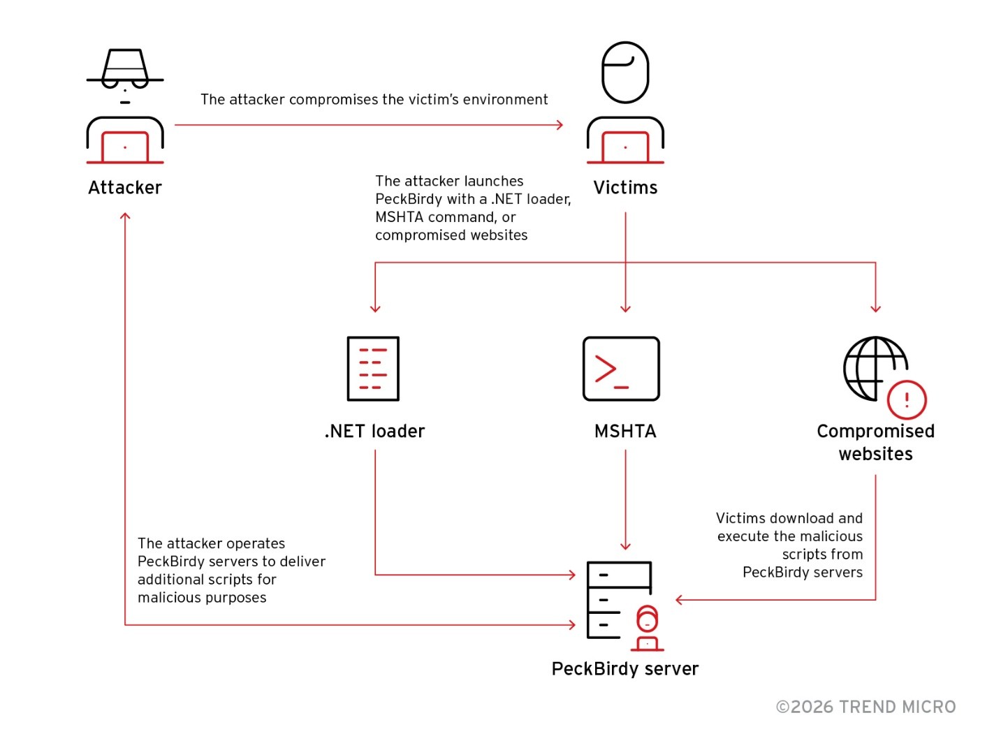 “In één geval vond de injectie plaats op een inlogpagina van een overheidssysteem, terwijl we bij een ander incident merkten dat de aanvaller MSHTA gebruikte om PeckBirdy uit te voeren als een kanaal voor externe toegang voor zijwaartse beweging in een particuliere organisatie”, aldus Trend Micro. “De dreigingsactor achter de aanvallen ontwikkelde ook een .NET-uitvoerbaar bestand om PeckBirdy met ScriptControl te starten. Deze bevindingen demonstreren de veelzijdigheid van het ontwerp van PeckBirdy, waardoor het meerdere doeleinden kan dienen.”