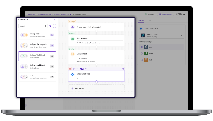 - Geautomatiseerde realtime levering: Naarmate de bevindingen worden geïdentificeerd, moeten ze automatisch worden gerouteerd naar de juiste mensen en workflows zonder te wachten op het volledige rapport. Vooraf gedefinieerde regelsets moeten triggeren triage, ticketing en tracking om sanering te laten beginnen tijdens het testen nog steeds aan de gang is.