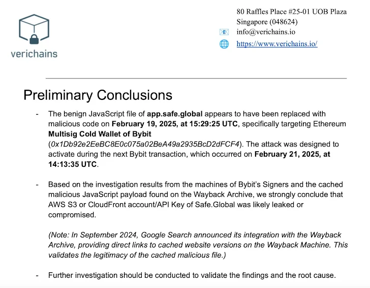 Verichains merkte op dat “het goedaardige JavaScript -bestand van App.safe.global op 19 februari 2025 om 15:29:25 UTC lijkt te zijn vervangen door kwaadaardige code, specifiek gericht op Ethereum Multisig Cold Wallet van Bybit,” en dat de “Attack was ontworpen om te activeren tijdens de volgende bybit -transactie, die plaatsvond op de volgende bybit -transactie, die plaatsvond op de volgende bybit -transactie, die plaatsvond op de volgende bybit -transactie, die plaatsvond op de volgende bybit -transactie, die plaatsvond op de volgende Bybit -transactie, op de volgende bybit -transactie, op de volgende Bybit,”.