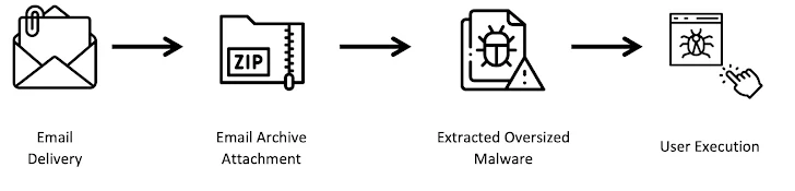 Deze ontwikkeling komt doordat bedreigingsactoren voortdurend nieuwe manieren vinden om beveiligingssystemen te slim af te zijn en malware te verspreiden door hun toevlucht te nemen tot generatieve kunstmatige intelligentie (GenAI) om effectieve phishing-e-mails te maken en gecomprimeerde bestandsbijlagen te leveren die te grote malware-payloads bevatten (meer dan 100 MB groot). in de hoop de analyse te ontwijken.