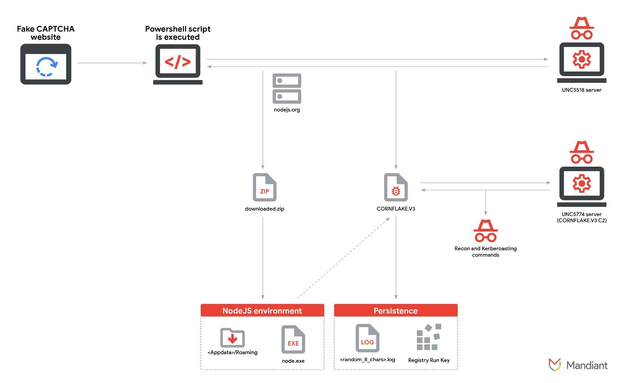 Google-eigendom Mandiant beschreef de activiteit, die het volgt als UNC5518, als onderdeel van een Access-as-a-Service-schema dat nep-captcha-pagina’s gebruikt als kunstaas om gebruikers te misleiden om initiële toegang tot hun systemen te bieden, die vervolgens worden gemoneteerd door andere bedreigingsgroepen.