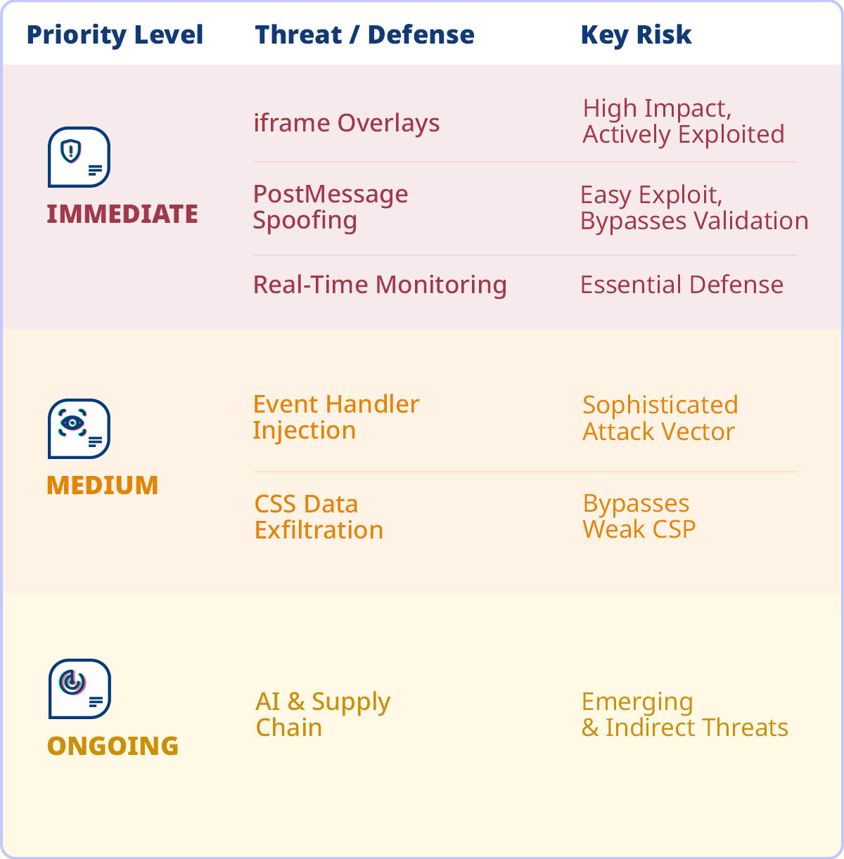 Niet alle iframe -bedreigingen zijn gelijk. Beveiligingsteams moeten prioriteit geven aan verdediging op basis van deze risicomatrix: