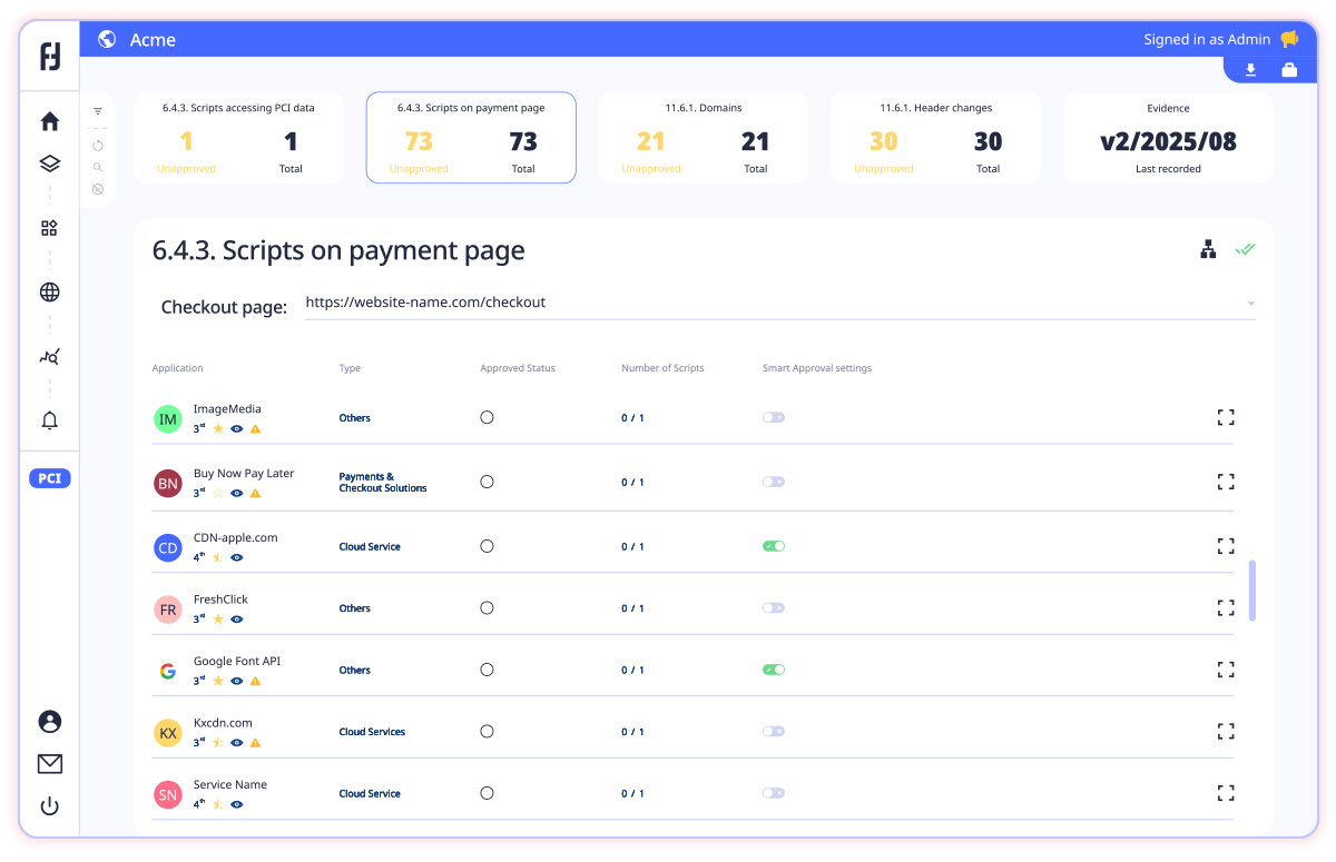 - Vereiste 6.4.3: Alle scripts op betalingspagina’s die IFRames hosten, moeten worden beheerd en geautoriseerd