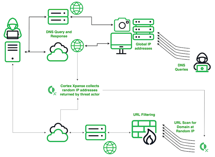 “Cortex Xpanse behandelt de domeinnaam in de DNS-query als een URL en probeert inhoud op te halen van het willekeurige IP-adres voor die domeinnaam”, leggen de onderzoekers uit. “Firewalls, waaronder Palo Alto en Check Point, evenals andere beveiligingsapparaten, voeren URL-filtering uit wanneer ze het verzoek van Cortex Xpanse ontvangen.”