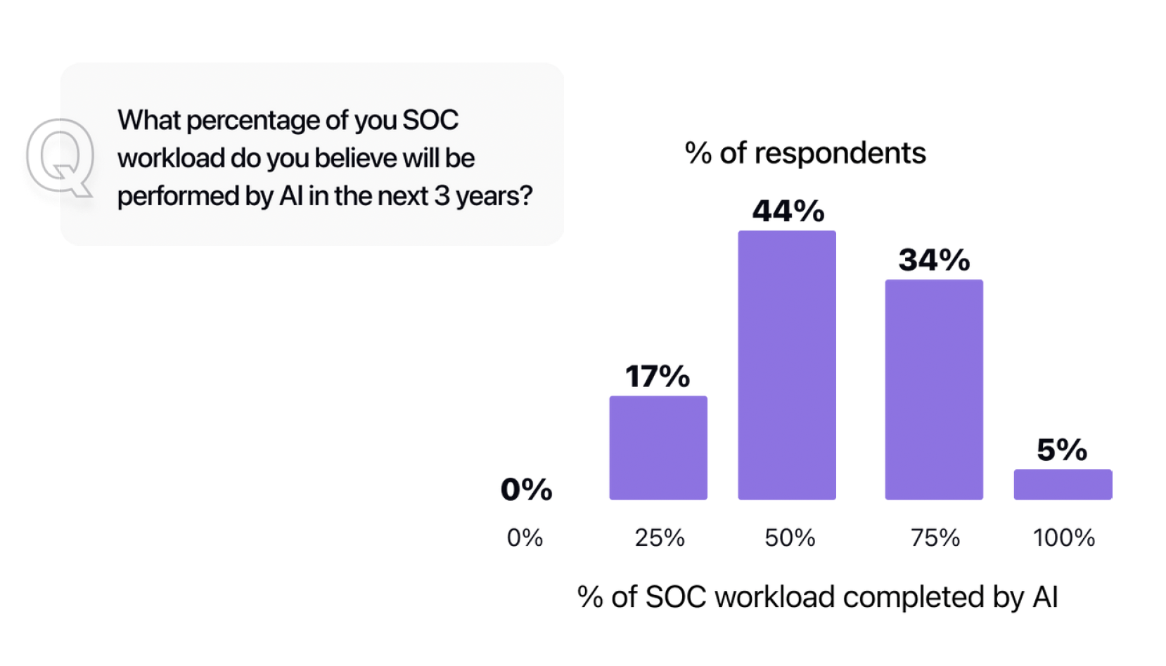 De volgende golf van adoptie komt snel. Onder teams die AI nog niet gebruiken, is 60% van plan om AI-aangedreven SOC-oplossingen binnen het jaar te evalueren. En vooruitkijkend wordt volgens de enquête naar verwachting 60% van alle SOC -werklast door AI afgehandeld in de komende drie jaar.