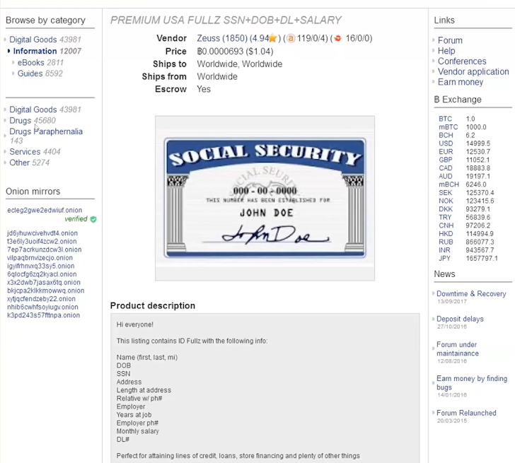Hier zijn een paar voorbeelden van diensten die in het verleden beschikbaar waren op het dark web. Vandaag de dag zijn veel van deze diensten verwijderd. In plaats daarvan stappen criminelen over op het Telegram-berichtenplatform, vanwege de privacy- en beveiligingsfuncties.