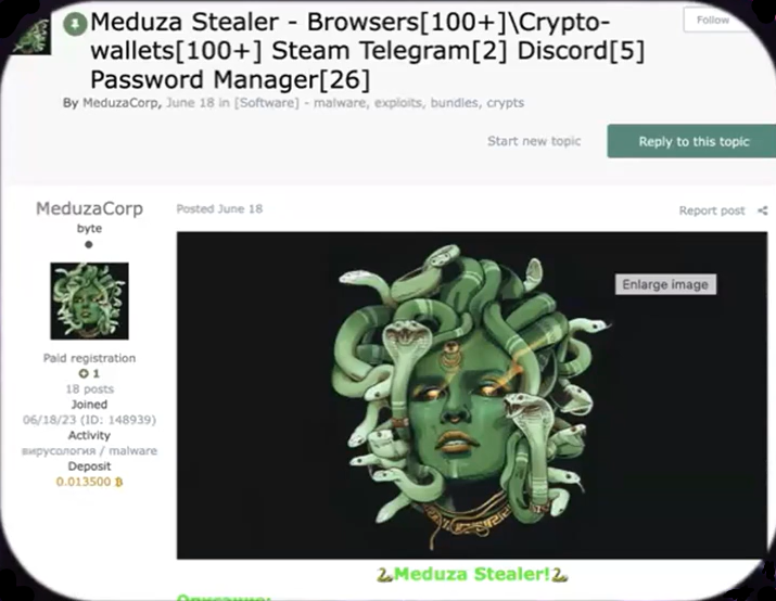 Laten we eens kijken hoe de verschillende aanvalsfasen worden weergegeven op het Dark Web, aan de hand van een voorbeeld van malware die wordt gebruikt om informatie te stelen voor ransomware-doeleinden: