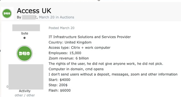 In een ander voorbeeld verkoopt een aanvaller Citrix-toegang aan een IT-infrastructuur Solutions and Services Provider in het Verenigd Koninkrijk.
