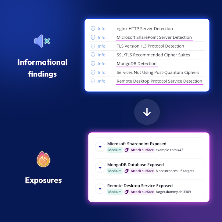 Dat vereist een detectievermogen dat identificeert welke informatiebevindingen een blootstelling vertegenwoordigen en de juiste ernst toekent. Een blootgesteld SharePoint-exemplaar kan bijvoorbeeld redelijkerwijs worden behandeld als een probleem met een gemiddeld risico.