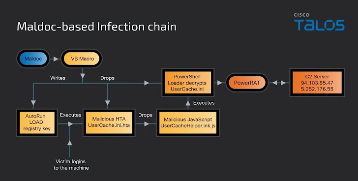 “De campagne omvat modulaire infectieketens die Maldoc- of HTML-gebaseerde infecties zijn en de tussenkomst van het slachtoffer vereisen om de infectieketen op gang te brengen”, zei Cisco Talos-onderzoeker Chetan Raghuprasad in een analyse van dinsdag.
