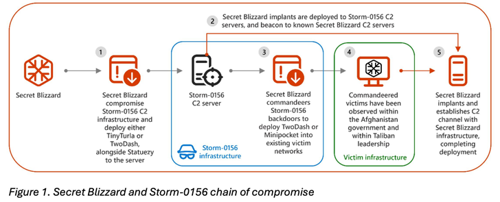 “Hierdoor kan Secret Blizzard informatie verzamelen over de interessante doelwitten van Storm-0156 in Zuid-Azië zonder zich rechtstreeks op die organisaties te richten”, aldus Microsoft.