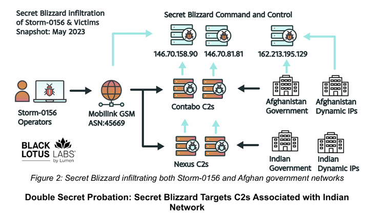 Uit de laatste aanvalscampagne die door Black Lotus Labs en Microsoft is gedetecteerd, blijkt dat de bedreigingsacteur Storm-0156 C2-servers gebruikte om backdoors op apparaten van de Afghaanse overheid in te zetten, terwijl ze zich in India richtten op C2-servers die geëxfiltreerde gegevens hosten van Indiase militaire en defensiegerelateerde instellingen.