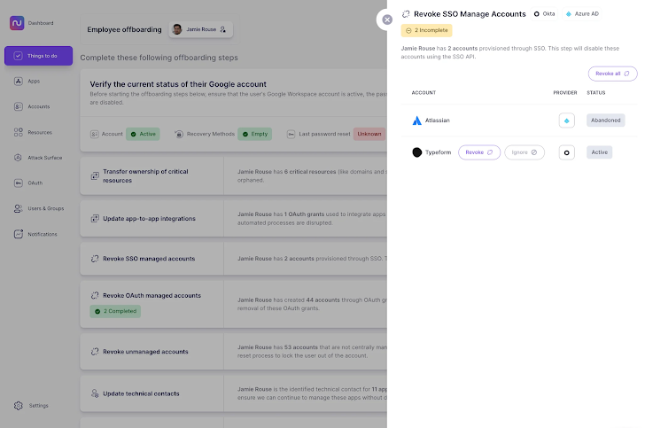 ‍Laten we eens kijken hoe Nudge Security u bij elke stap helpt, zodat u een volledige offboarding van SaaS-accounts kunt garanderen.