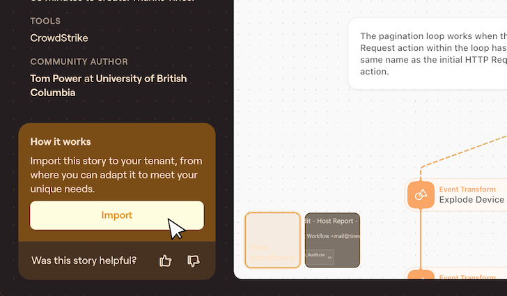 Een recente winnaar is een workflow die is ontworpen om CrowdStrike RFM-rapportage te automatiseren. Het is ontwikkeld door Tom Power, een beveiligingsanalist aan de Universiteit van British Columbia, en maakt gebruik van orkestratie, AI en automatisering om de tijd die aan handmatige rapportage wordt besteed te verminderen.