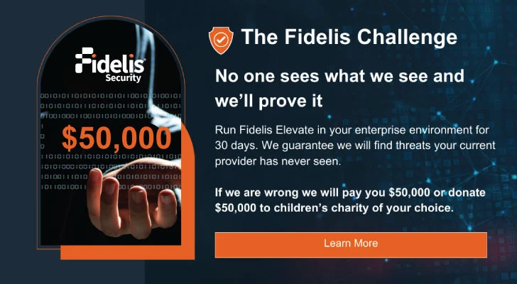 Fidelis Security brengt expertise en toewijding in de voorhoede van cyberbeveiliging. Ze zijn ervan overtuigd dat hun perspectief op cyberdreigingen ongeëvenaard is. Om dit te bewijzen worden organisaties uitgenodigd om de Fidelis Challenge aan te gaan. Gedurende 30 dagen kunnen ze Fidelis Elevate integreren in uw bedrijfsomgeving, en Fidelis Security zal zijn ongeëvenaarde mogelijkheden voor bedreigingsdetectie demonstreren. Fidelis Security heeft er vertrouwen in dat organisaties het verschil zullen zien dat zij kunnen maken in het beveiligen van hun organisaties. Probeer het gratis.