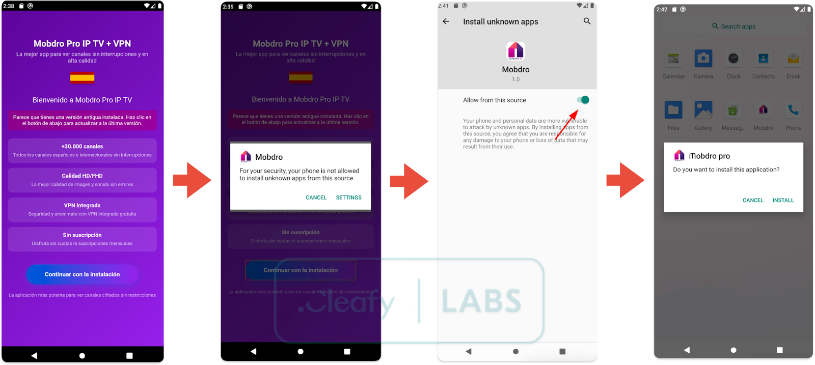 Aanvalketens die Klopatra distribueren, gebruiken social engineering -lokaas om slachtoffers te misleiden om dropper -apps te downloaden die zich voordoen als schijnbaar onschadelijke tools, zoals IPTV -applicaties, waardoor de dreigingsacteurs beveiligingsverdedigingen kunnen omzeilen en de controle over hun mobiele apparaten volledig kunnen overnemen.