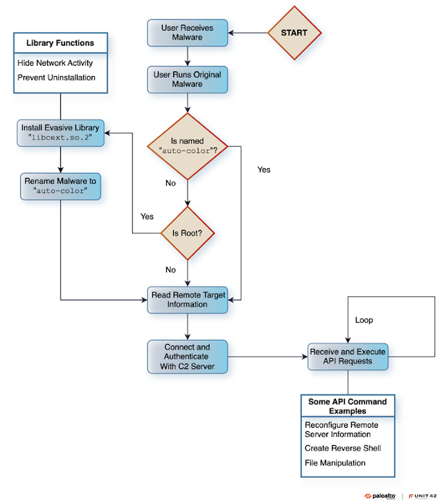 Auto-color wordt zo genoemd op basis van de bestandsnaam De initiële payload hernoemt zichzelf Post-installatie. Het is momenteel niet bekend hoe het zijn doelen bereikt, maar wat bekend is, is dat het het slachtoffer vereist dat het expliciet op hun Linux -machine wordt uitgevoerd.