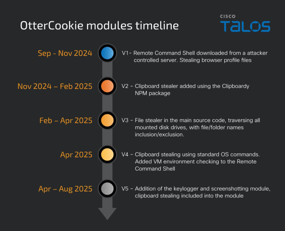 Ten minste één versie van deze nieuwe module is uitgerust met een extra klembordbewakingsfunctie om de inhoud van het klembord over te hevelen. De opkomst van de nieuwe versie van OtterCookie schetst een beeld van een tool die is geëvolueerd van eenvoudige gegevensverzameling naar een modulair programma voor gegevensdiefstal en uitvoering van opdrachten op afstand.