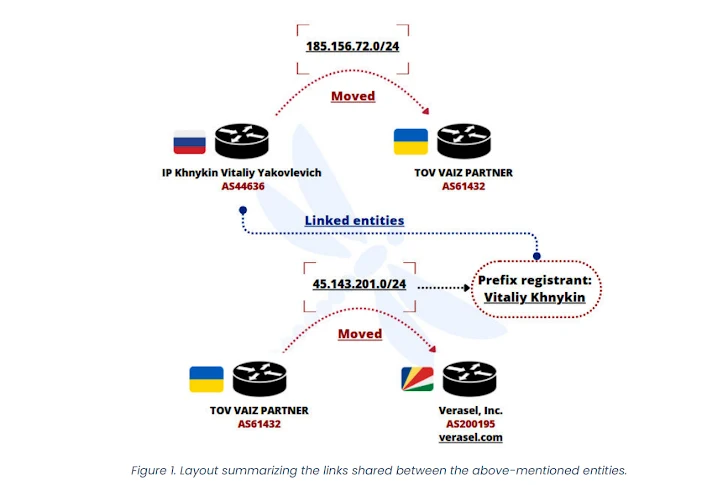 Het geheel van voorvoegsels die zijn verplaatst van AS61432 en AS210950 worden nu aangekondigd door kogelvrije en beledigende netwerken door Shell -bedrijven zoals Global Internet Solutions LLC (GIR.NETWORK), Global Connectivity Solutions LLP, Verasel, IP Volume Inc. en Telkom Internet LTD.
