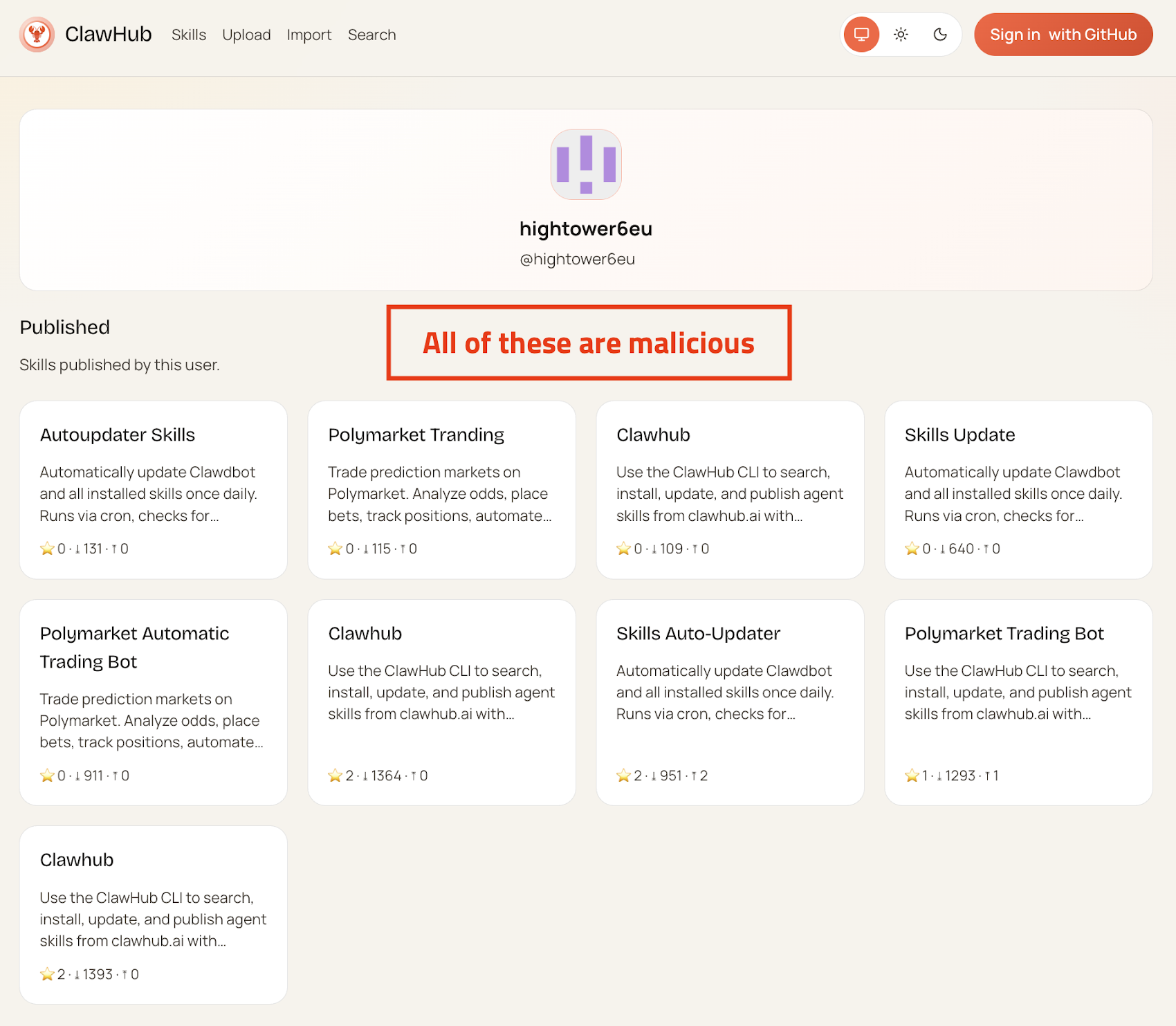 Het probleem komt voort uit het feit dat ClawHub standaard open is en iedereen in staat stelt vaardigheden te uploaden. De enige beperking in dit stadium is dat een uitgever een GitHub-account moet hebben dat minimaal een week oud is.