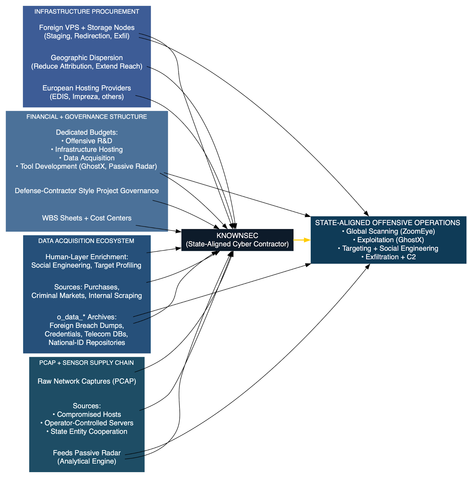 “In werkelijkheid (…) heeft het een schaduworganisatie die werkt voor de PLA, MSS en de organen van de Chinese veiligheidsstaat. Dit lek legt een bedrijf bloot dat veel verder gaat dan de rol van een typische leverancier van cyberbeveiliging. Tools als ZoomEye en de Critical Infrastructure Target Library geven China een mondiaal verkenningssysteem dat miljoenen buitenlandse IP’s, domeinen en organisaties catalogiseert, in kaart gebracht per sector, geografie en strategische waarde.”