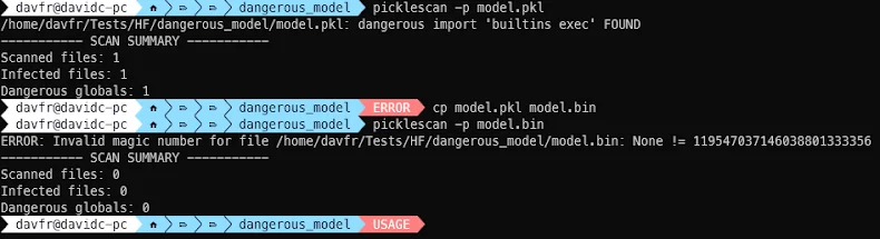 Picklescan, ontwikkeld en onderhouden door Matthieu Maitre (@mmaitre314), is een beveiligingsscanner die is ontworpen om Python Pickle-bestanden te parseren en verdachte import- of functieaanroepen te detecteren voordat ze worden uitgevoerd. Pickle is een veelgebruikt serialisatieformaat in machine learning, waaronder PyTorch, dat het formaat gebruikt om modellen op te slaan en te laden.