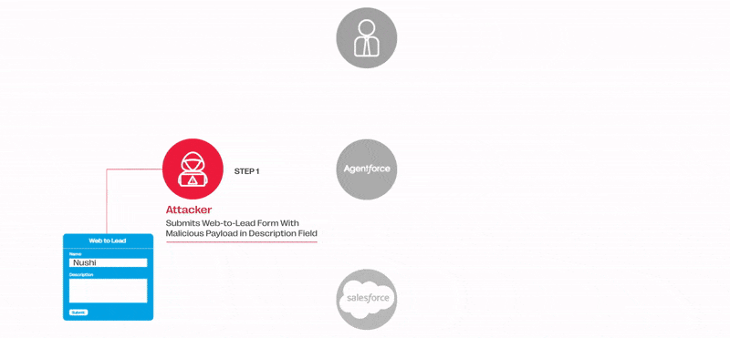Het aanvalspad dat door Noma wordt aangetoond, is bedrieglijk eenvoudig omdat het het beschrijvingsveld in web-to-lead-formulier overhaalt om kwaadaardige instructies uit te voeren door middel van een snelle injectie, waardoor een dreigingsacteur gevoelige gegevens kan lekken en het kan exfiltreren naar een Salesforce-gerelateerd toegestaan ​​toegestane domein dat was verlopen en beschikbaar voor aankoop voor As Loint As Little As Little As $ 5.