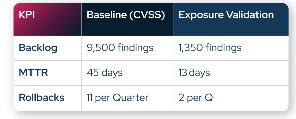 • Achterstanden van 9.500 CVSS “kritische” bevindingen krimpen naar gewoon 1.350 belichtingen bewezen relevant.