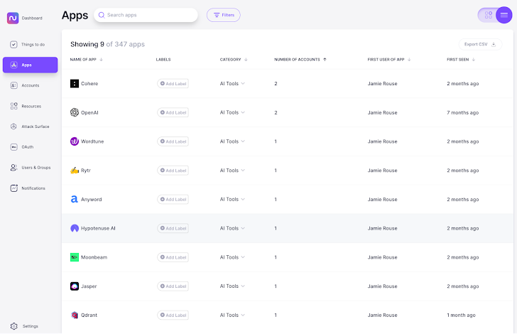 Met Nudge Security krijgt u onmiddellijk een overzicht van alle AI-tools die uw werknemers gebruiken, en kunt u waarschuwingen instellen om u op de hoogte te stellen wanneer er een nieuwe AI-tool wordt geïntroduceerd. Nudge Security ontdekt automatisch AI-tools en andere SaaS-applicaties in uw omgeving en categoriseert deze op type zodat u ze eenvoudig kunt filteren, inclusief de gratis, betaalde en proefaccounts die u mogelijk niet kunt ontdekken door te vertrouwen op inkoopprocessen of door onkostendeclaraties te doorzoeken .