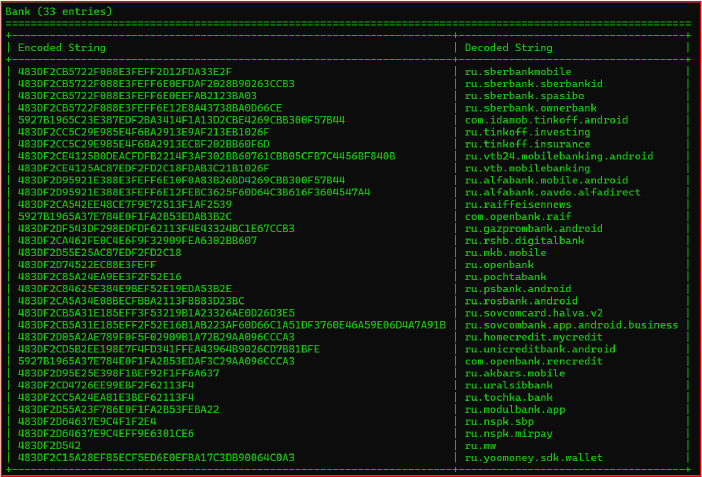 De bankmodule controleert ook webbrowsers zoals Chrome, Edge, Firefox, Brave, Opera, DuckDuckGo, Dolphin Browser en sBrowser op URL’s waartoe het slachtoffer toegang heeft. Bovendien ondersteunt het de mogelijkheid om een ​​lange lijst met opdrachten van de server te ontvangen om persoonlijke informatie te verzamelen en volledige controle over het apparaat te krijgen.